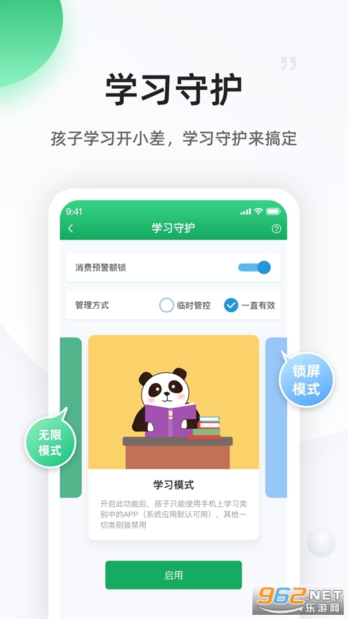 《熊猫守望家长端》是北京闽锋教育科技股份有限公司推出的一款可以帮助家长来管理孩子手机的软件,朋友们可以通过软件来来绑定自己孩子的手机,可以查看到孩子手机的每一笔消费,可以查看各个软件的使用情况,可以设定一定时间段禁止玩手机等。