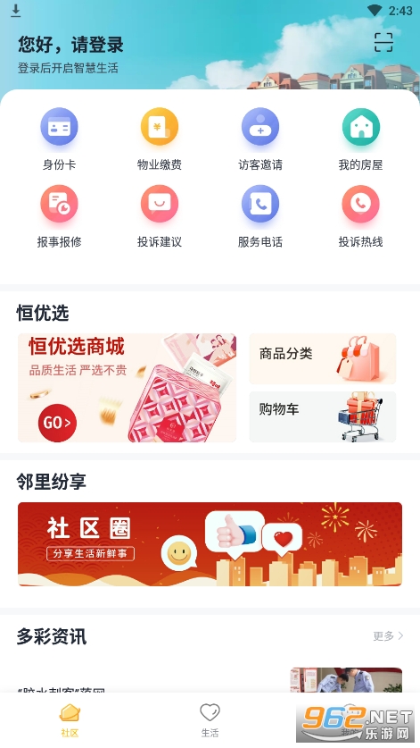 恒大智慧社区app是一个为恒大物业小区居民提供便捷生活服务的应用程序。它包括物业公告、维修报修、社区活动资讯、在线缴费等功能,让居民能够方便地获取社区信息并进行相应的操作。功能强大,为恒大居民提供便捷的生活服务与帮助!