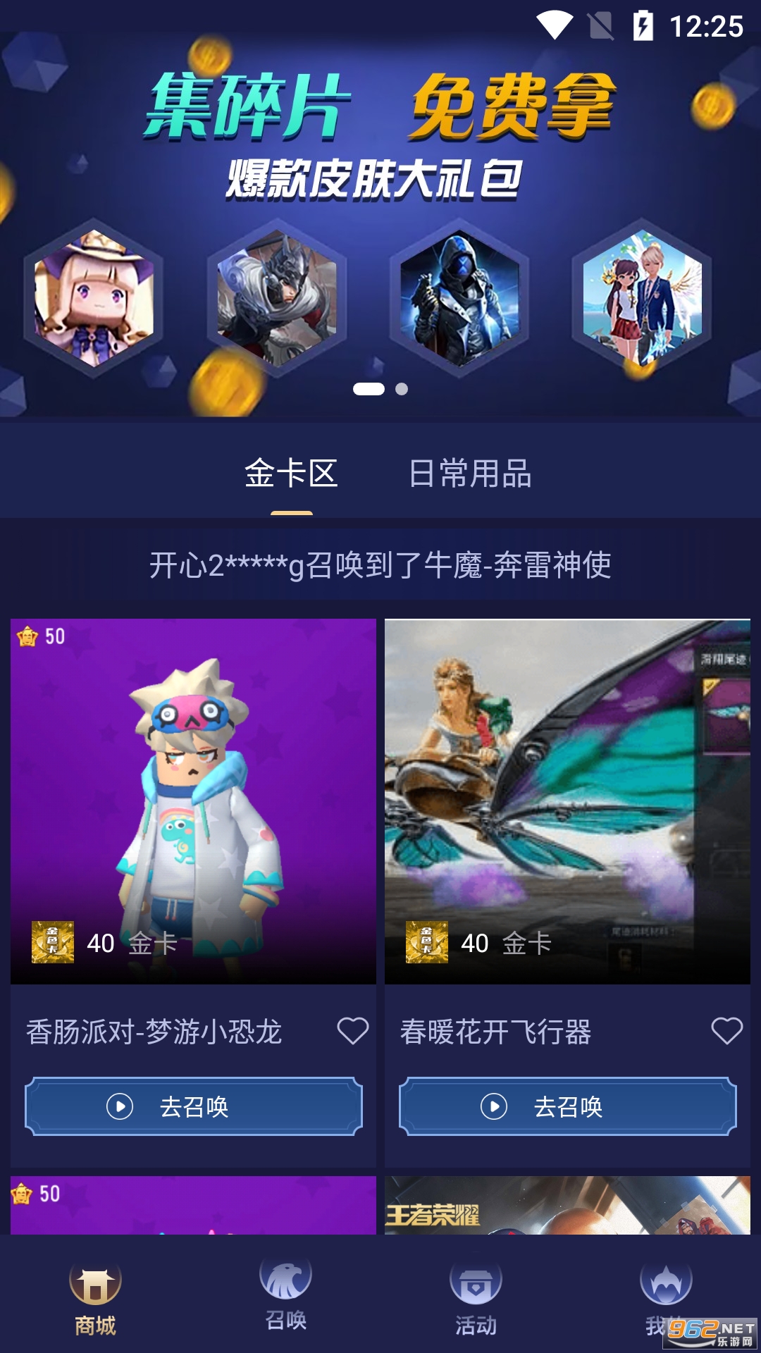 3、抽卡获得皮肤碎片,集齐相对应数量即可获得;