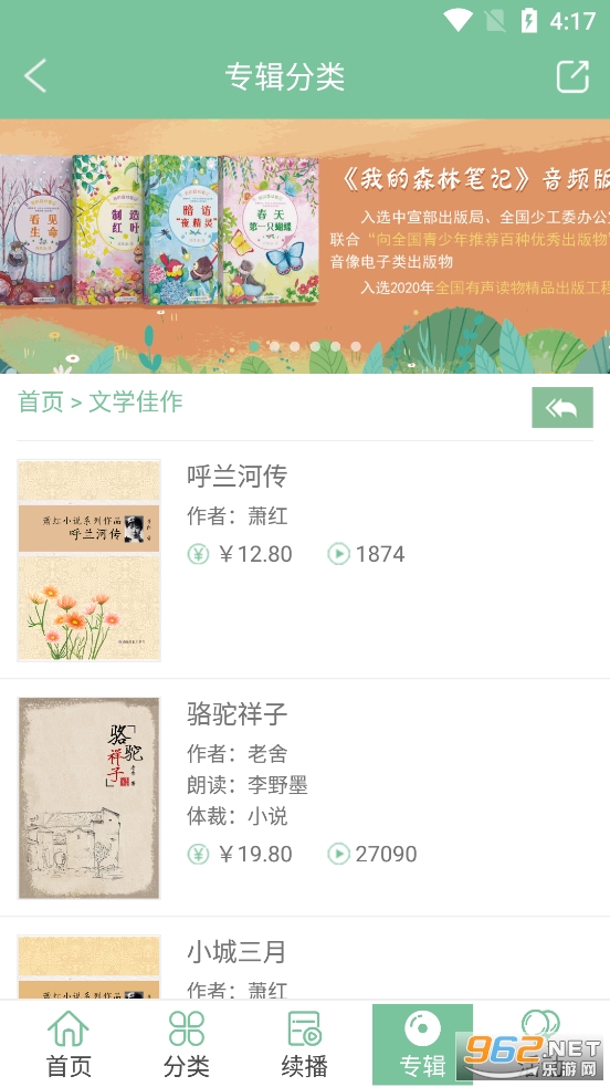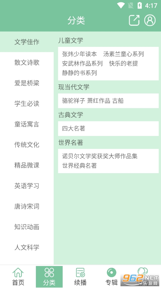 手机听书软件,平台中有着大量的文学作品,可以选择唐诗宋词、童话寓言等各种作品,可以在线聆听,操作简单,干净简洁,给读着好的阅读体验,喜欢的朋友可以下载试试。