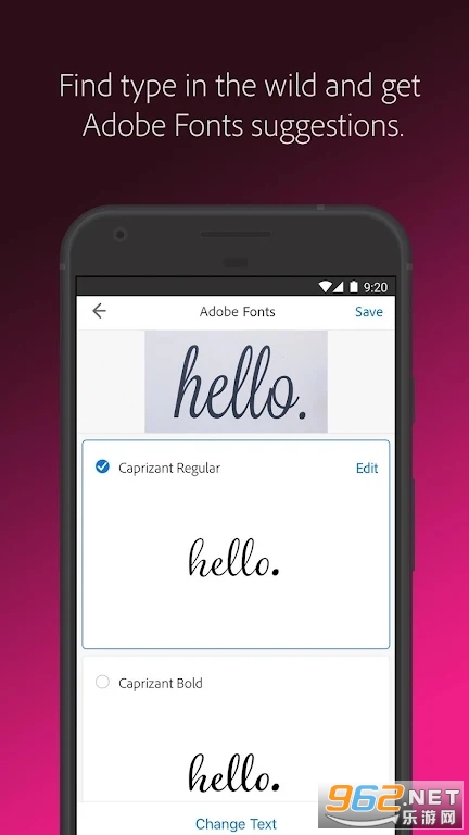 寻找字体查找器?使用 Adobe Capture 找到您的完美字体。拍摄您喜欢的类型的照片(在杂志上、标签上、标志上、任何地方!),然后观看类似 Adobe 字体的列表神奇地出现。