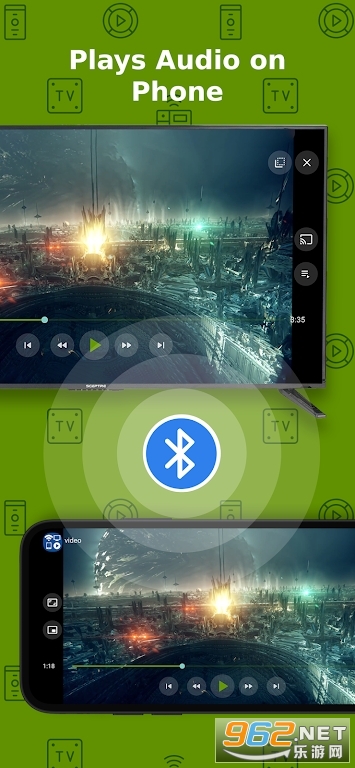 使用兼容的流媒体设备将手机/平板电脑上的电影、音乐或照片投射到电视上。