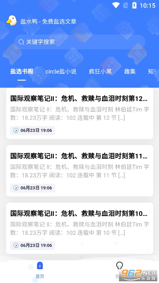 《盐水鸭app》是一款为朋友们打造的可以免费阅读知乎盐选文章的软件,受到不少知乎网友们的喜爱,可以在盐水鸭app中去观看各种盐选文章,有着盐选书阁、circle盐小说、疯狂小黑、趣集、知乎搬运工等多个栏目,可以免费看各种趣味文章。