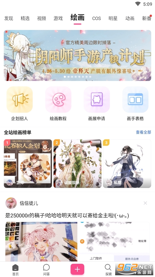 3、圈子的种类蛮多的,不过大都是跟二次元相关,像是一些漫画、动画、游戏和漫展等等的圈子。我特别喜欢漫画圈子,里面的大神很多,画出来的图我都会存在手机里拿来当壁纸,偶尔大神们也会出来互动,我们这些小粉丝就会乘机措油,哈哈。