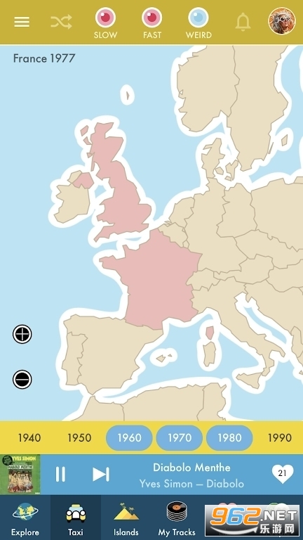 2、Radiooooo,一款让你在午后温暖的阳光下,静静欣赏带着岁月尘埃和时间印记的金曲,来一场跨越时空的音乐之旅的应用。
