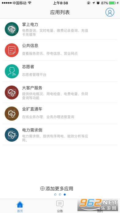 1、提供各类用电业务信息,用户可根据需求在此应用中心选择性的安装应用