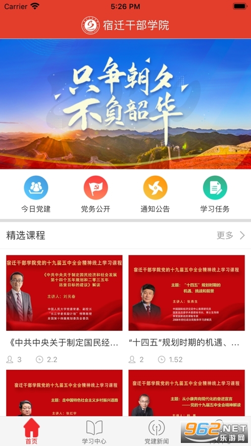 宿迁地区的党建学习平台,宿迁干部学院app有丰富的学习内容,查看通知公告,学习计划,支持课程下载离线学习,提升党员的综合水平。