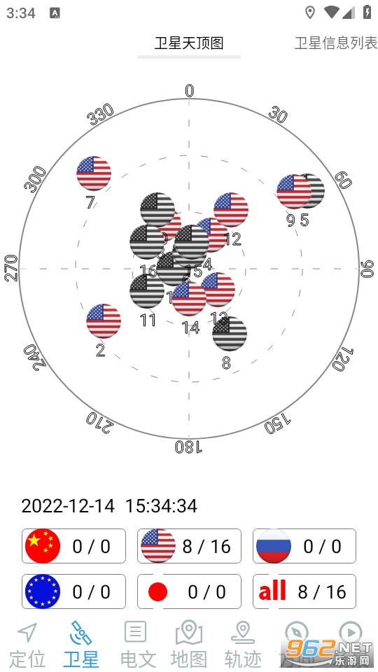 1.直观显示当前卫星信号接收状态,支持北斗、GPS、GLONASS、伽利略等多个卫星导航系统;