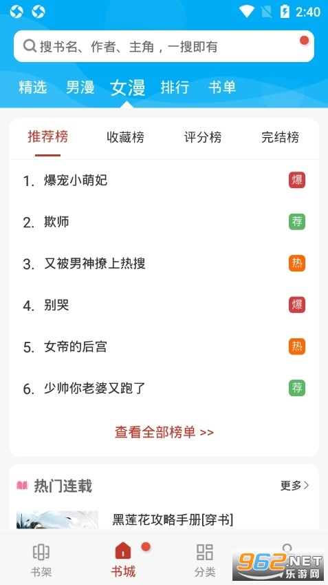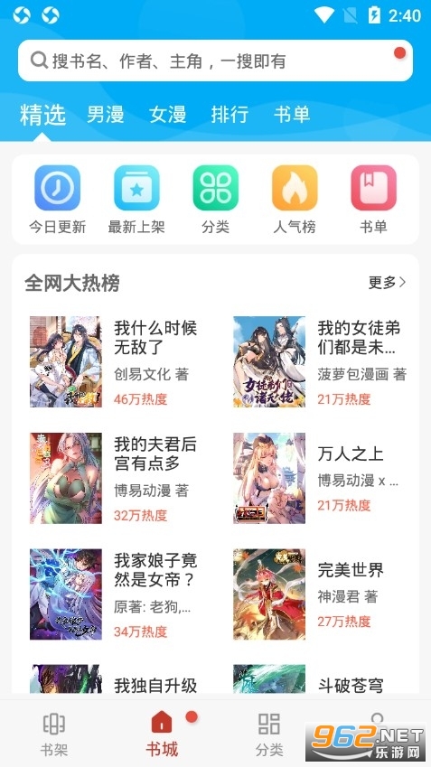 4、个性分类,智慧搜索 分类涵盖题材,精选和作者3种方式,个性化推荐满足漫迷们的挑剔口味;特有的智能搜索引擎,海量关键词汇搜索引导,不再让好漫画轻易从指尖错过。