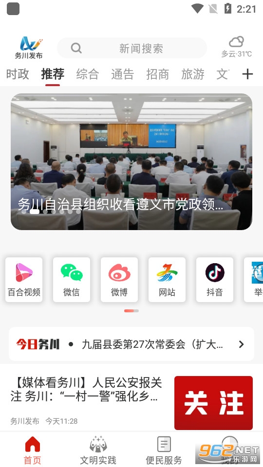 务川发布APP是务川自治县融媒体中心的官方新闻客户端,以聚焦务川新闻、传播仡佬文化为己任,致力于打造具有民族特色的影音图文矩阵化传播生态系统,为用户提供准确优质高效的区域综合资讯。