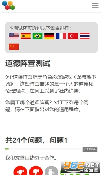 为大家提供dnd阵营九宫格测试汉化版下载,非常有趣的一款测试软件,通过回答几个具有特殊意义的问题,选择你想要的答案,就可以测试出九宫格阵营中你属于哪个阵营,帮助你更好的了解自己!