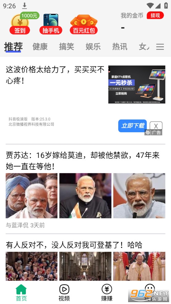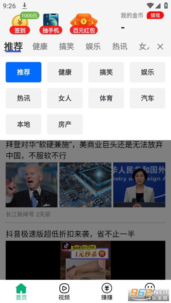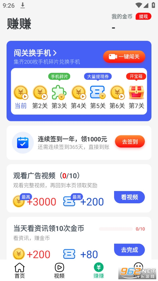 各种新闻资讯应有尽有,看资讯也能够赚零钱,轻松领取各种红包,观看视频也能够赚钱,还有做一些简单的任务赚取奖励,集齐碎片就可以兑换手机。快来下载吧!