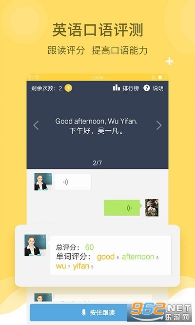 英语听说机考改革,孩子口语练习必须得到重视。口语评测功能,精准检测孩子发音,给出评分。早练习,早提高。