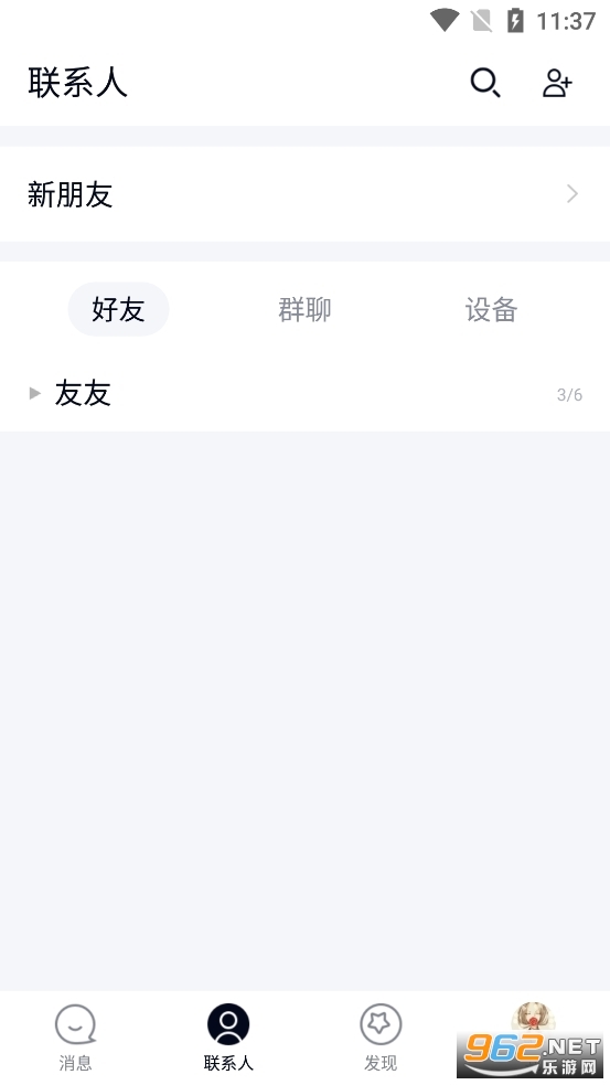 2、主界面共有消息、联系人、发现和我四个栏目,想要的功能应有尽有
