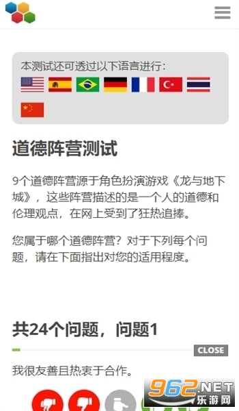 提供dnd阵营测试官方中文版2026的汉化下载方式,挺不错的一款调查问卷形式的测试小软件,每个人在里面都有着专属于自己的人格类型测试,并根据你所选来完成最终结果的分析。