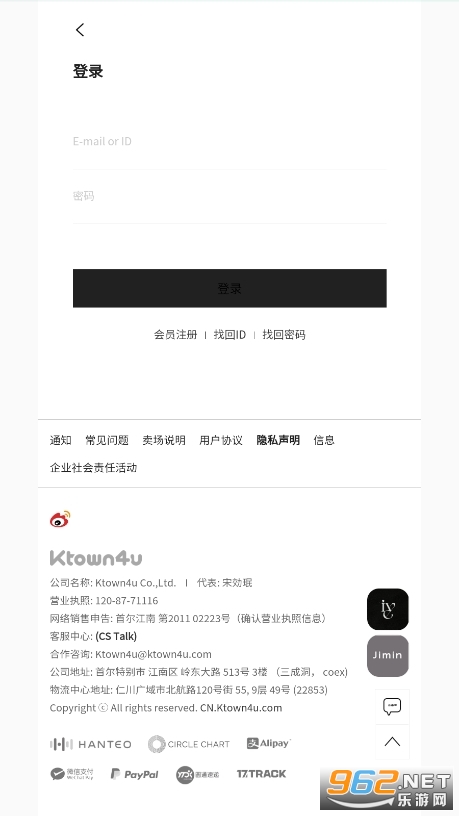 点击个人中心打开KTOWN4U官方网站主页面,点击个人中心。