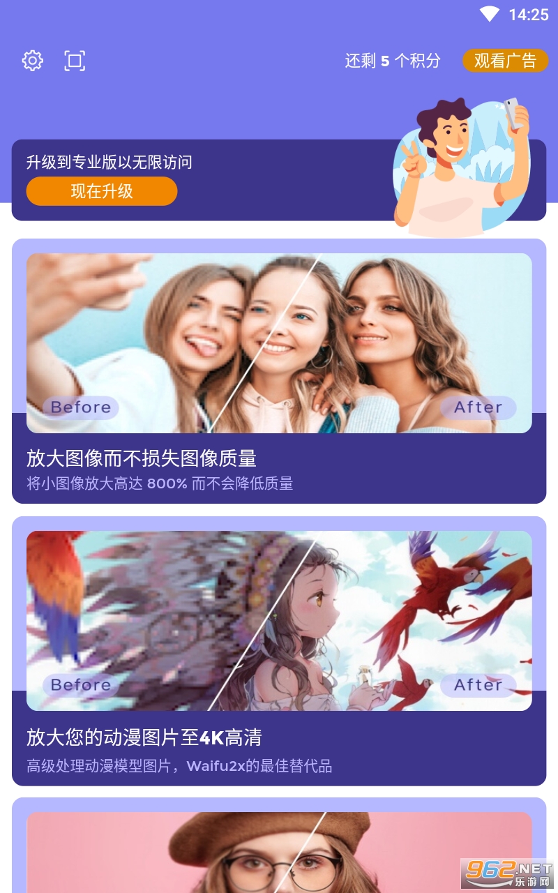 《画质2x安卓版》是一款利用了ai的技术能对画面进行放大并且增强的工具,最大放大8倍同时保持高清,用法很简单,而且功能性十分的强大,有着修复画面以及补强增强等等的操作,整体的感觉也还是很不错的哦,感兴趣的亲们赶紧下载吧。