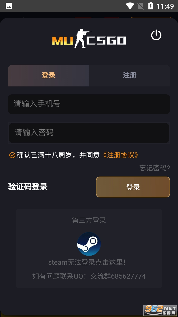 第二步:注册并登录平台,可以使用手机号注册登录,也可以直接使用steam账号登录;