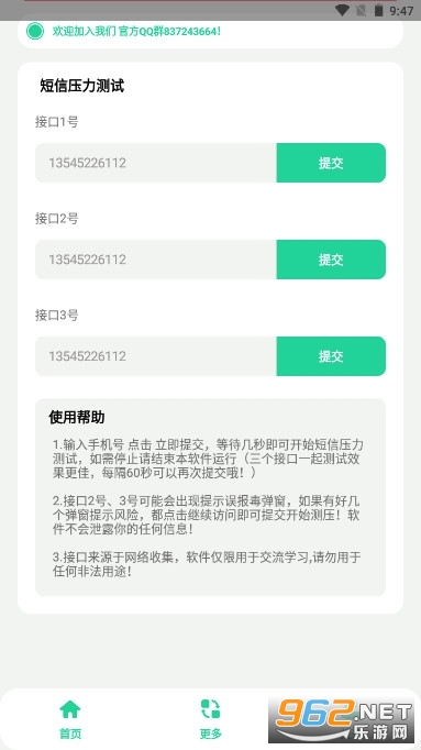 灵动短信压力测试器是一款功能强大的手机短信压力测试APP,此款工具能够帮助用户轻松测试手机短信压力,方便简单,只需输入电话号码即可,大家不要当作是短信轰炸机使用,否则后果自负!