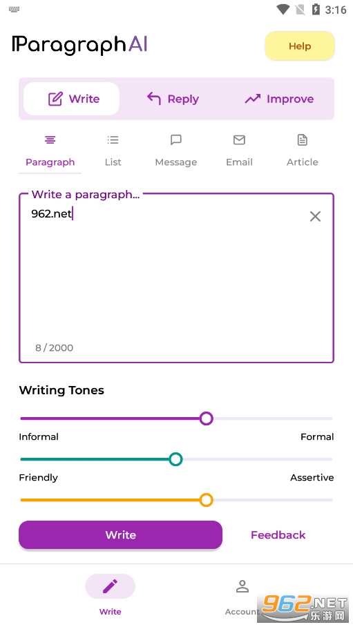 《ParagraphAI写作助手》一款基于gpt的AI智能写作助手软件,它能够帮助你进行快速的内容书写,你可以给它一些标题和关键词来生成一篇文章,还能够快速进行文本的校准和语法的提示,非常好用的AI写作助手,快来下载吧!