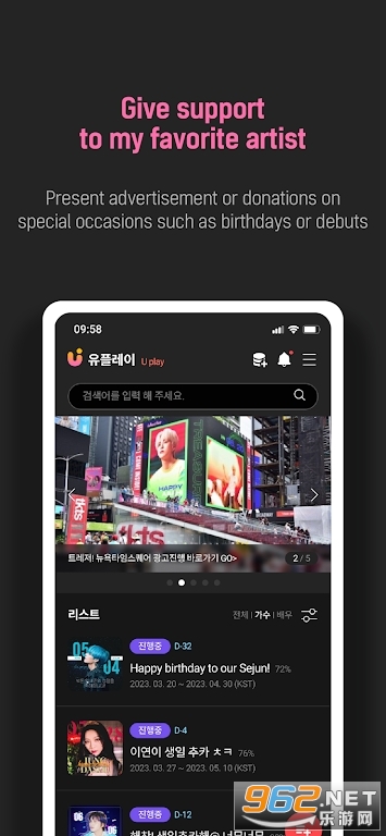 方便地为您的偏见加入一个公开的众筹。在生日或出道等特殊场合为您最喜欢的艺术家张贴广告或捐款。