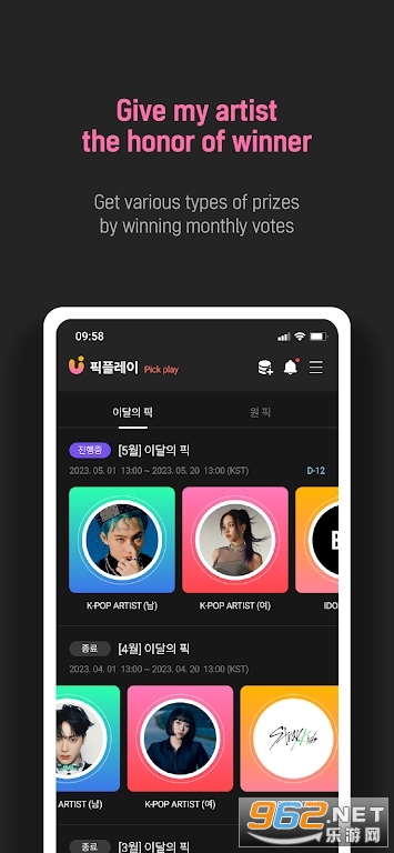 给您最喜欢的艺术家赢得一等奖的荣誉。 [Monthly PICK] K-pop 艺人和演员等的每月人气投票。 [1 PICK] 对各种主题进行投票。