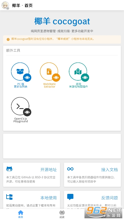 椰羊cocogoat是一款很实用的专门为原神游戏准备的游戏辅助软件,该软件中是有很多的功能,丰富的游戏攻略和数据库,可以帮助用户快速的查询到相关的数据,所有的游戏信息都是可以在这里得到答案。轻松的解锁原神中的全部成就,软件会告诉用户每一个成就的解锁方法,让自己可以轻轻松松的获得所有成就以及成就所给的原石,软件的使用起来也是非常的简单!