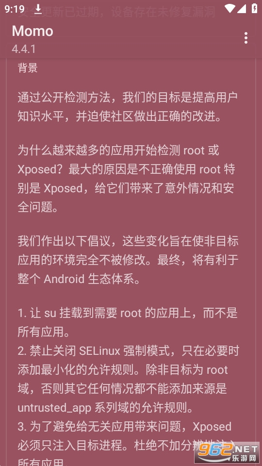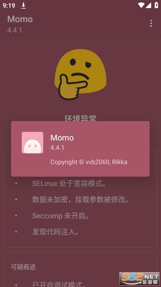 《momo环境检测》是非常好用的手机检测类手机软件,能够帮助你轻松的解决各种问题,操作方式简单,轻松的检测软件root检测的问题,手机root了之后也不会被检测到,隐藏手机的root状态,进其他需要检测手机状态的软件也不会再闪退了。快来下载吧!