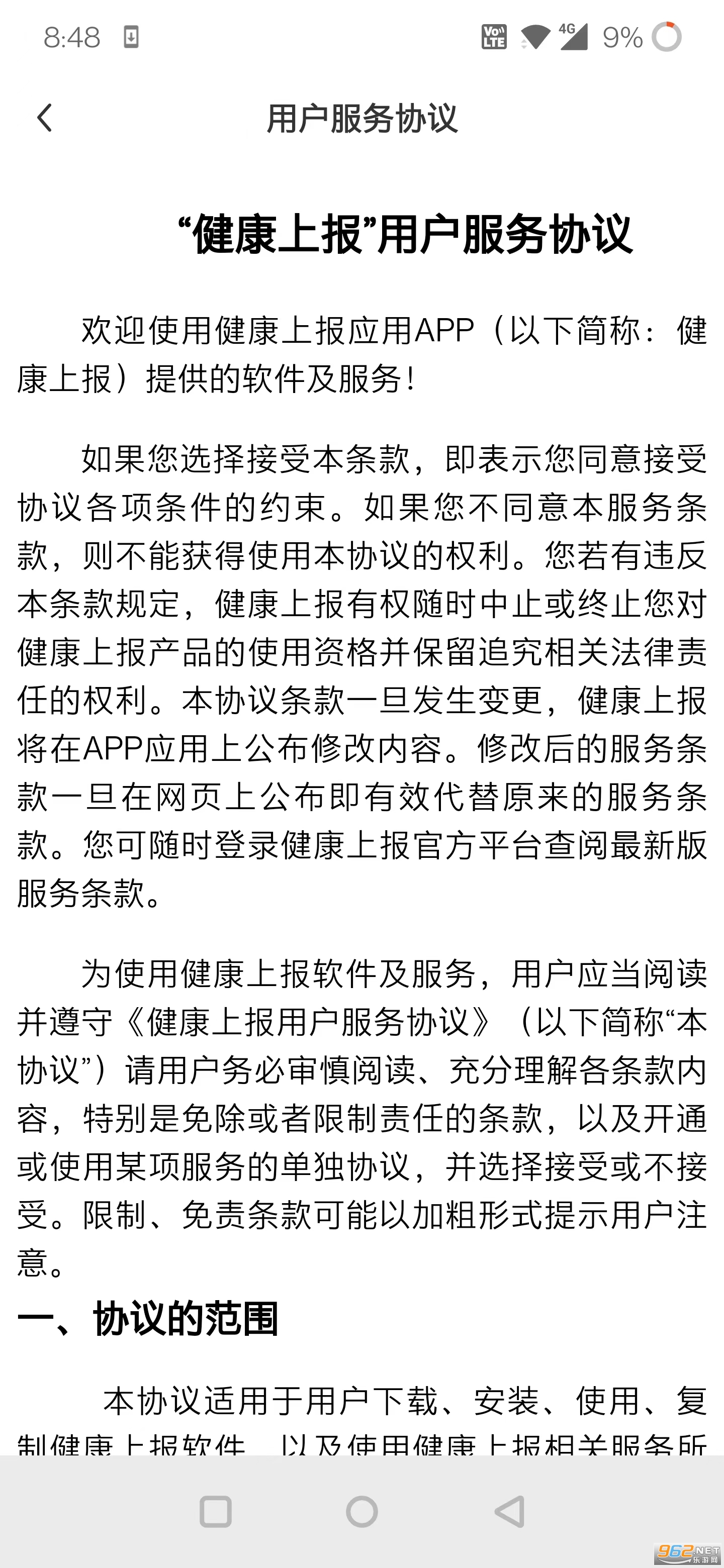 1、每个健康上报模版都需要设置上报范围,只有上报模版的上报范围包含自己,才可以看到并且进行上报。