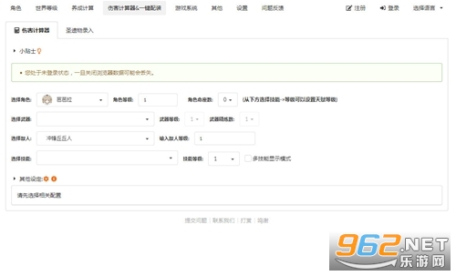 有些角色的技能之间有关联(例如魈/胡桃),请先选择相关技能的等级(网站会自动保存),然后再选择相关技能来计算伤害。