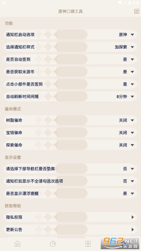 7、另外还有桌面小部件功能,实时显示树脂,洞天宝钱,查询体力等小组件