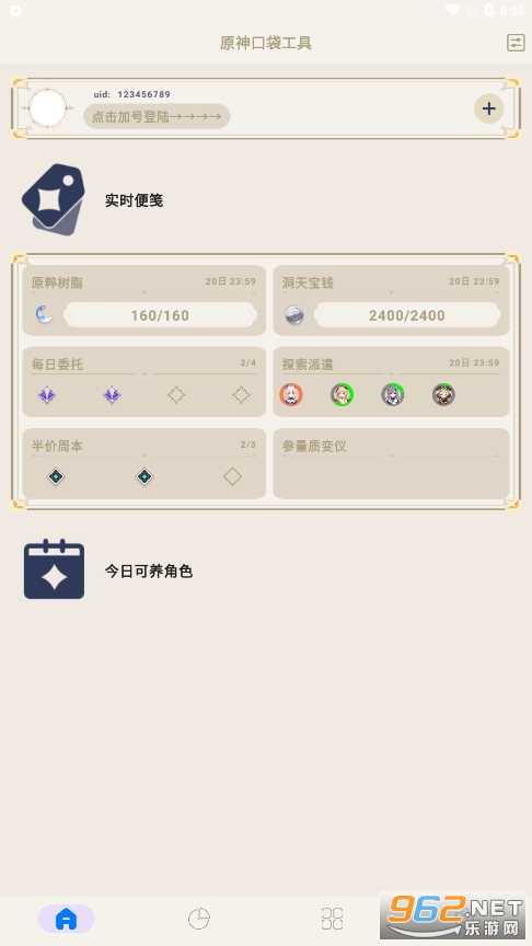 1、很多人不知道原神口袋工具怎么用,因为要先登陆你的米哈游账号,否则啥也干不了,点击加号登陆
