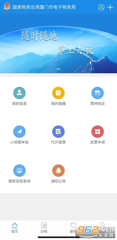 厦门税务掌上办税服务厅是一款经由厦门税务局官方推出的掌上办税生活服务手机软件,软件采用了先进的互联网技术为用户打造了一个功能全面的掌上办税服务平台,帮助厦门本地的居民朋友能够随时了解税务政策办理相关的缴税退税业务。