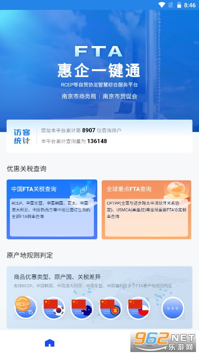 1、为落实自贸试验区提升战略,支持企业更好地利用自贸协定开拓国际市场,去年3月,南京市推出了全国首个FTA(自由贸易协定)惠企"一键通"智慧平台,在此基础上于近日升级上线了手机APP版本。