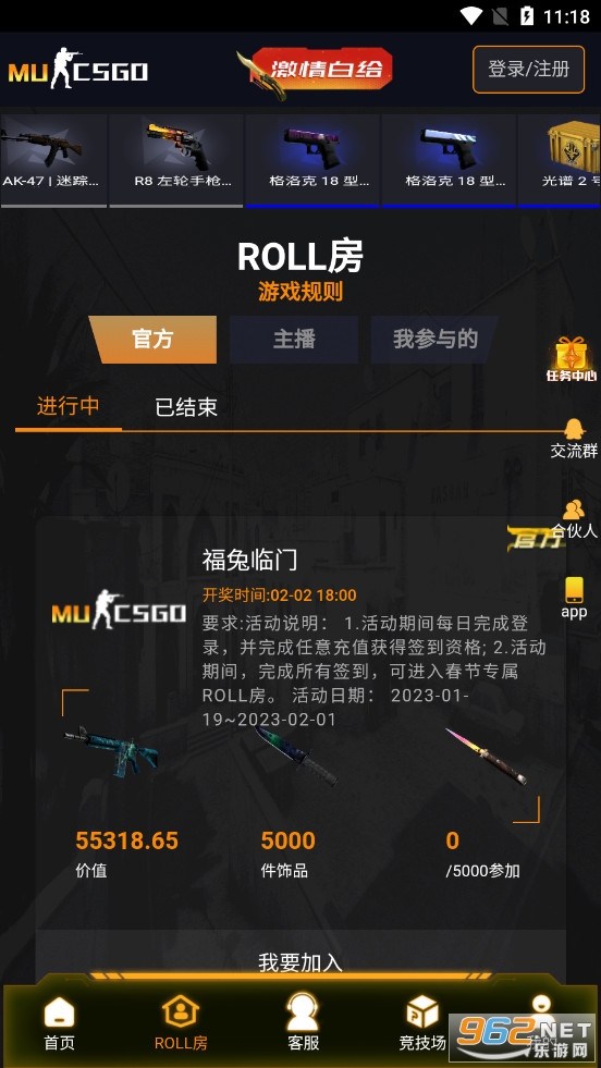 第六步:新手拥有免费福利ROLL房,注册即可参与,开出极品饰品不是梦。