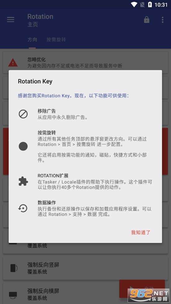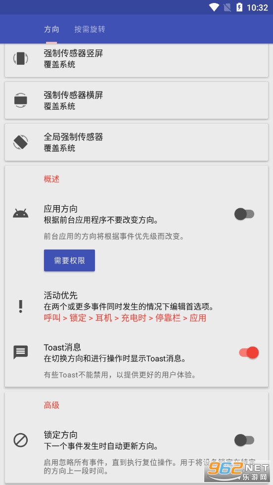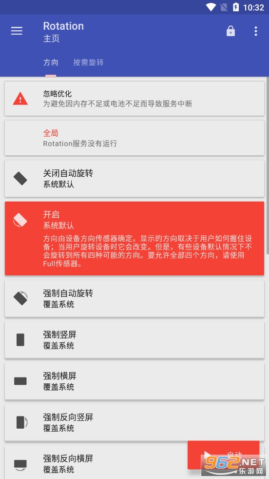 旋转是管理设备方向的工具。它提供了Android 支持的所有模式,并且可以根据应用程序或各种事件(如通话、锁定、耳机、充电和底座)进行配置。让我们尝试探索它的其他功能。