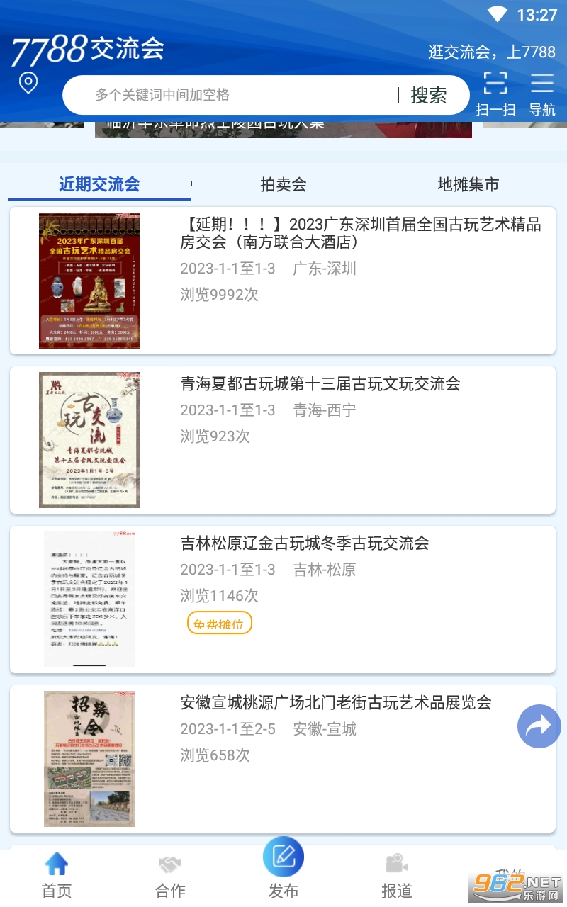 7788交流会APP是一款专注于线上交流会、地摊、古玩城信息查询的工具。7788交流会收录着全国各地交流会、古玩城和地摊集市信息,并且提供及时的交流会地摊现场报道和藏友在线讨论互动,更有藏友推荐特色交流会参会或地摊线路,是广大藏友必备的交流会地摊集市查询工具,让你身在异地也能第一时间掌握当地古玩藏品交流资讯。