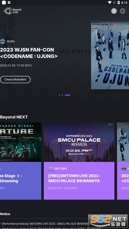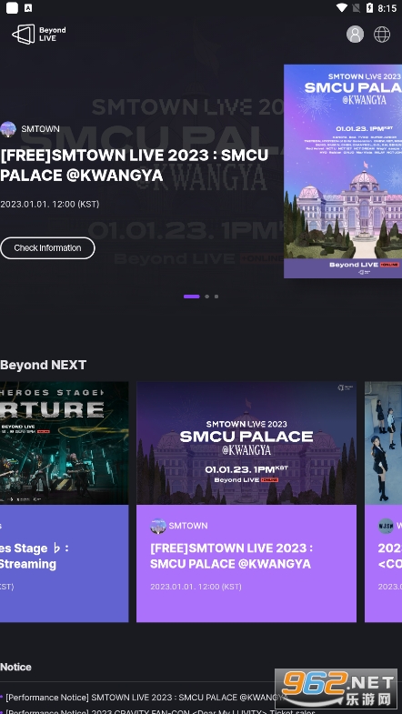 《beyond live app》是专为kpop全球歌迷们打造的一款在线音乐会流媒体平台,结合了AR技术,在这里你可以多角度的欣赏每个偶像的舞台表演,实时通过手机,电脑,平板,随时随地在线欣赏表演,观看演唱会,音乐会,还可以实时和歌迷或者偶像发消息,进行交流,支持观看重播,有需要的话就来下载吧!