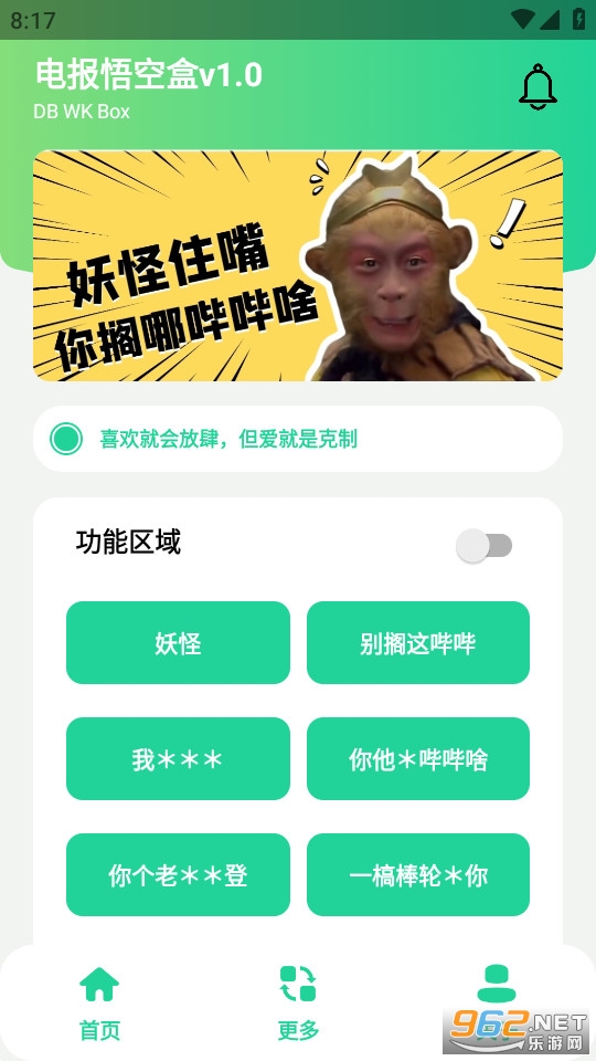电报悟空盒是一款魔性搞笑手机语音盒子APP。软件包含西游记中猴哥的各种经典语录,你可以将这些语音素材发到和朋友的聊天中,操作简单魔性有趣,感兴趣的小伙伴们快来下载软件体验更多精彩内容吧!