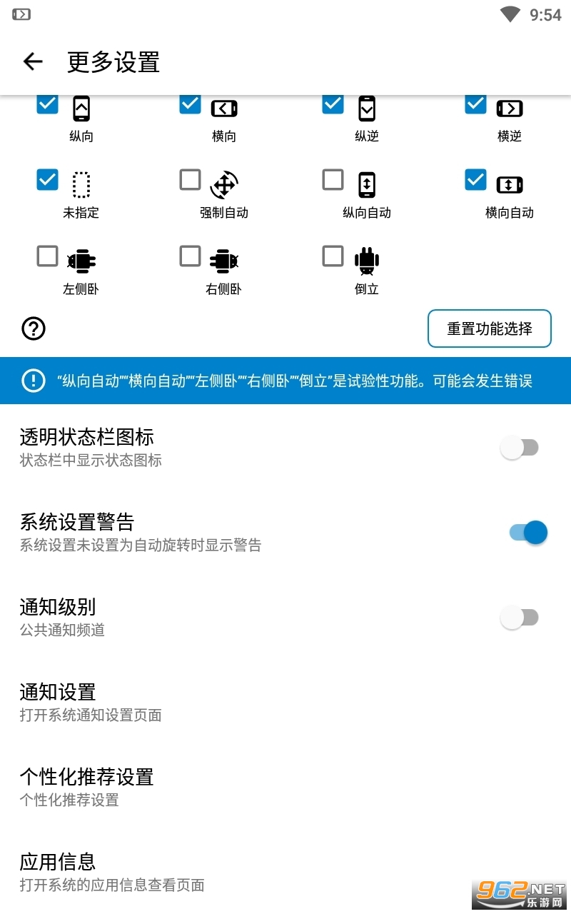 (2)强制自动旋转、强制纵向、强制横向、反转纵向、反转横向、传感器纵向、传感器横向。