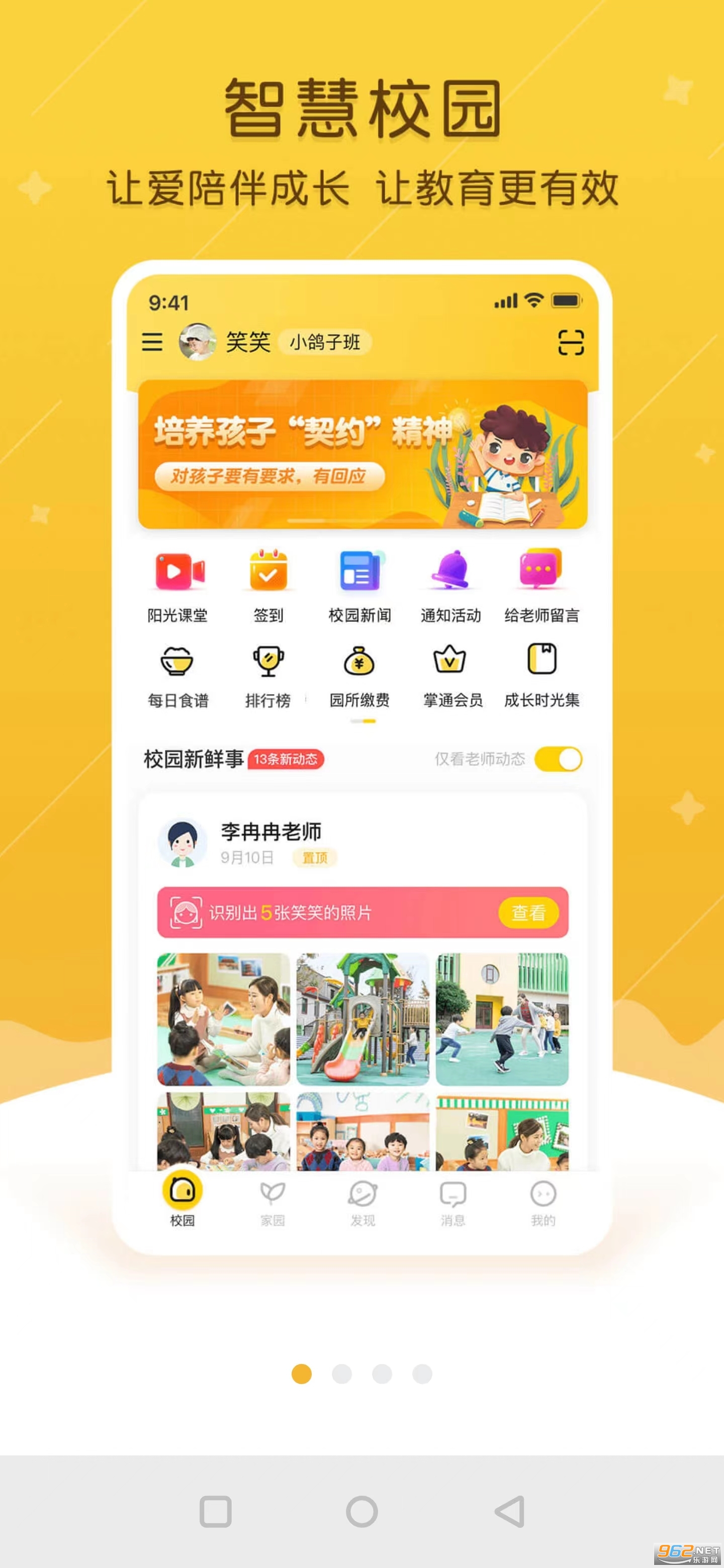 掌通家园基于移动互联网家园共育平台,秉承着“让孩子更开心,让家长更放心,让老师更用心,让园长更省心”的宗旨,在家长和幼儿园之间构建起紧密互动的桥梁。