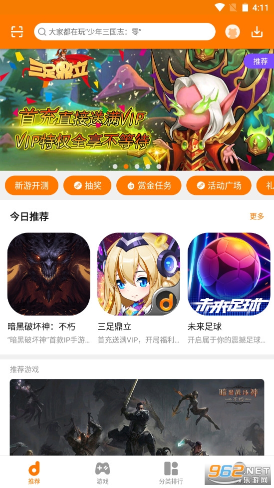 3、专业的手机游戏下载平台,软件有着全网最新最热门的游戏,提供排行版推荐功能,为你推荐最新最热门的游戏,软件还提供装备道具,充值,等服务,非常的安全,需要的用户可以来进行下载。