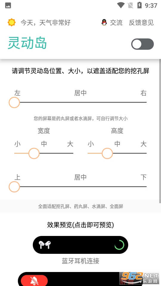 1.一比一还原苹果灵动岛,带给用户更多全面的玩法,还可以去进行选框的大小设置;