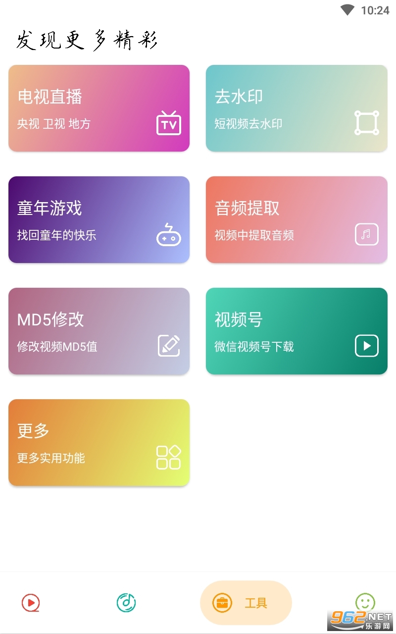 一款非常便捷的娱乐小工具软件,你可以在这里快速使用不同的工具,软件有着清新的ui和界面,没有各种推送和广告,在这里找到你想要的小工具,为你的生活带来便利,推荐给有需要的用户。