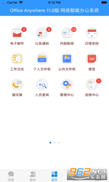 3、提供了邮件、公告通知、日程安排、通讯薄、工作流、微讯等功能模块