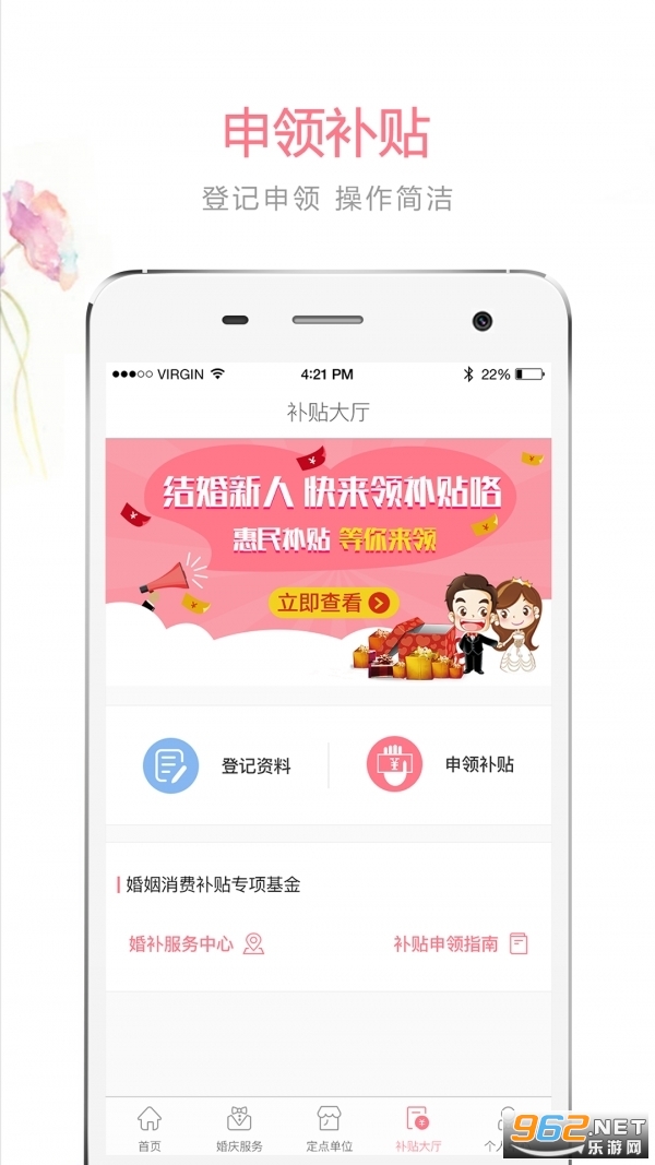 山西省婚补通app是最近新上线的app,用户们只要在这款软件上面注册结婚,在一年内结婚的人都是有补贴的,这些补贴都是真实有效的发放到结婚这的手中的,这点大可放心。