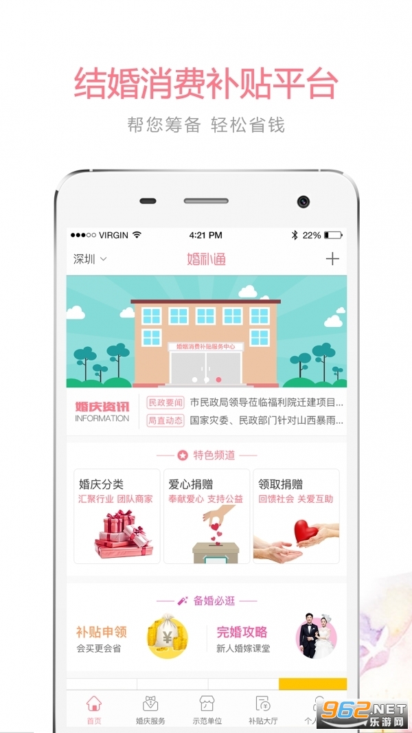 1.婚补通是婚姻消费补贴专项基金旗下的一款公益生活应用APP。