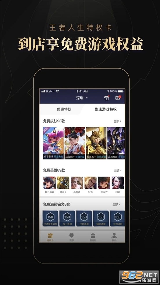 2、玩王者荣耀享商户特权,到店可免费使用英雄、皮肤、满级铭文,助力线下开黑;