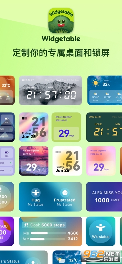 widgetable情侣小组件(LockScreen-Widgetable),内含多款有趣实用的锁屏和桌面小组件。新推出16系统适用的锁屏小组件,可以在锁屏上展示好友的状态、步数、距离、对你的想念,跟你的好友一期玩转锁屏!这个情侣锁屏小组件最近在国外真的巨,国外好多情侣都在玩,快叫上闺蜜&对象一起来玩呀!