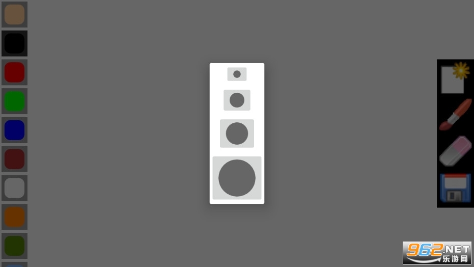 3、画布中的内容绘制完成后,点击左侧工具栏的“画笔”图标,接着会弹出一个选项框,里面有很多绘画工具,包括涂抹、Bucket、选框、变换、save等等;